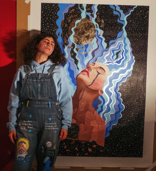 All people deserve freedom and the key of that is courage, so It's better to fight for freedom then be a slave to others and do whatever they want from you. I painted this picture in September 2022 when a young girl in Iran named Mahsa Amini was killed by the Islamic Republic for a few strands of hair sticking out of her scarf. And then a lot of people in Iran protested against that and also fought for liberty, and then many people were killed, arrested, blinded and executed by the Islamic Republic in these demonstrations. In this painting, which is a digital painting and painted with Photoshop, you can see the map of Iran, the woman is the face of Iran and is like a mother that is losing her children. Her chest shows the Persian colorful tiles, and on her hand is written: Mahsa Amini in Persian. The colors of the hands are the colors of flag of Iran. The woman standing on the left is Vida Movahed, the first woman who took off her hijab and held it like a flag as a sign of protest against the compulsary hijab. The white pigeon is a symble of freedom that is in captivity.