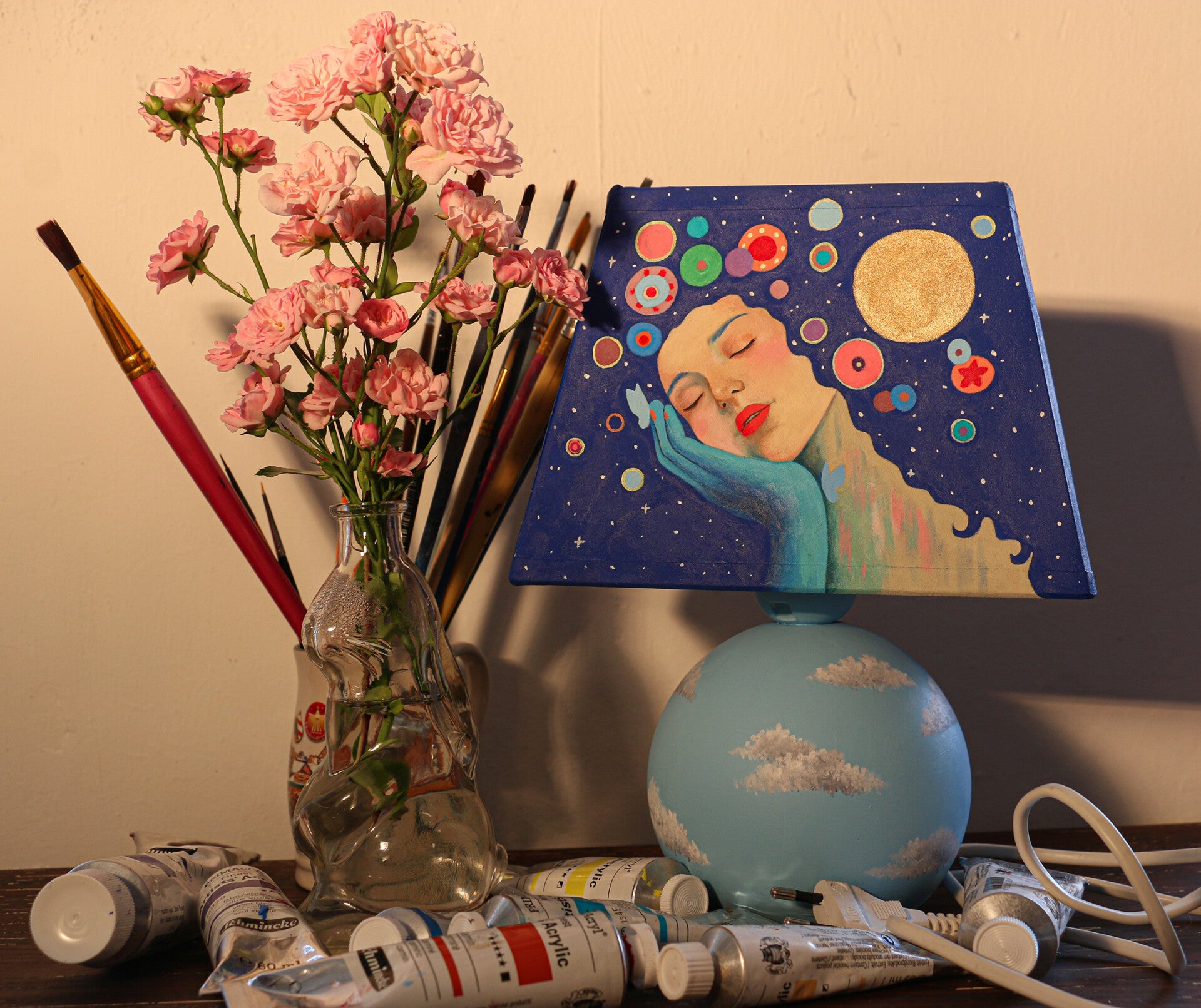 Hand painted lamp-Free shipping Germany